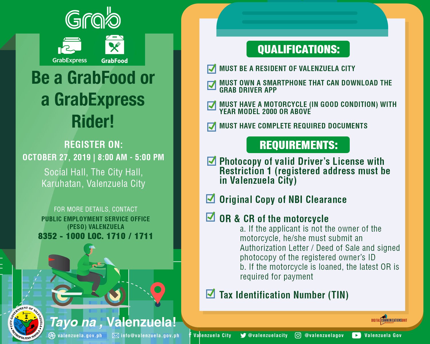 Valenzuelacity On Twitter Be A Grab Food Or Grab Express Rider Register On October 27 2019 8 00 Am To 5 00 Pm Valenzuela City Social Hall Beside The City Hall And Bring The