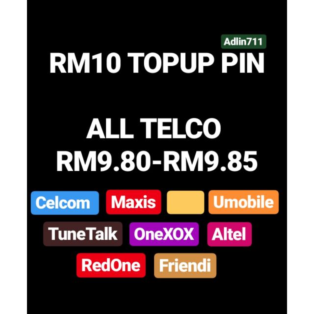 Rm10 Reload Topup Pin Maxis Celcom Tunetalk Altel Umobile Onexox Redone Friendi Shopee Malaysia
