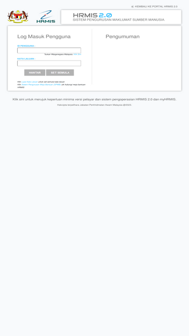Login Hrmis 2 0 Sistem Pengurusan Maklumat Sumber Manusia 2020