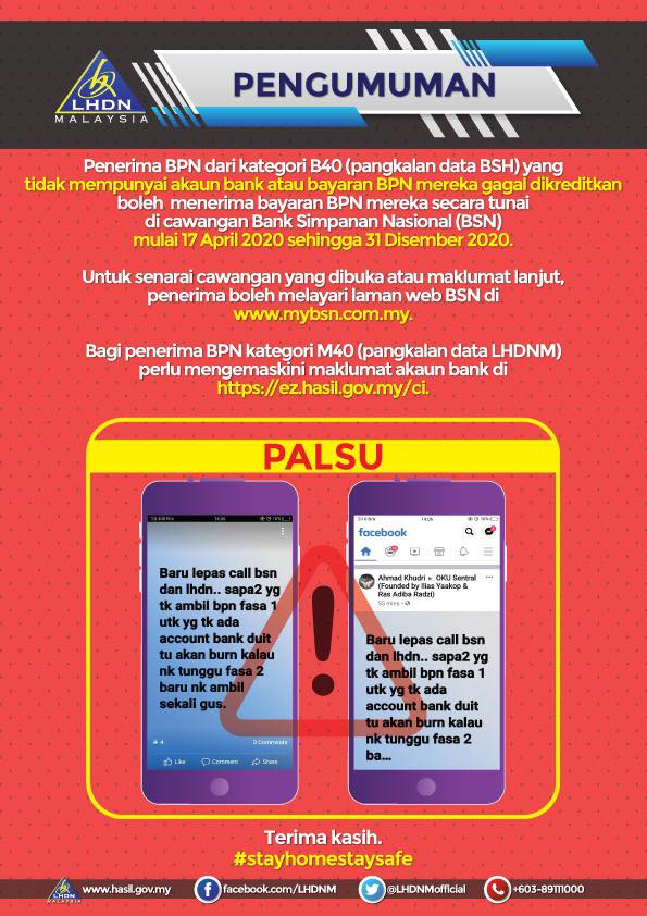 Did Not Receive Bantuan Prihatin Nasional As No Bank Account Displayed In Bpn Hasil Gov Malaysia