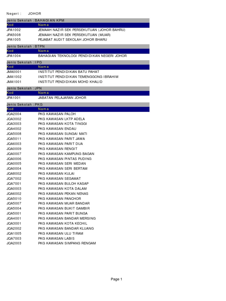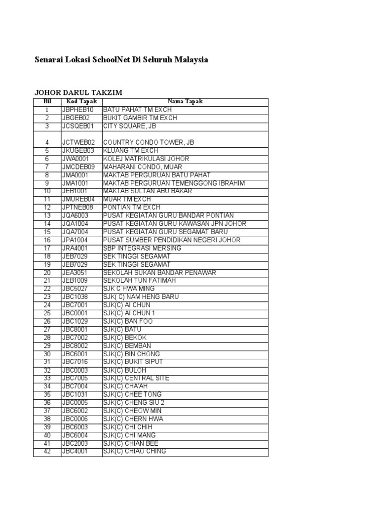 Senarai Sekolah Di Malaysia Mengikut Negeri
