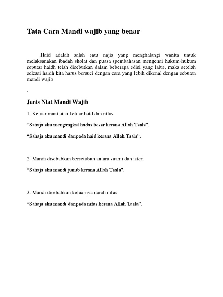 Niat Mandi Wajib Dan Cara Mandi Junub Yang Betul