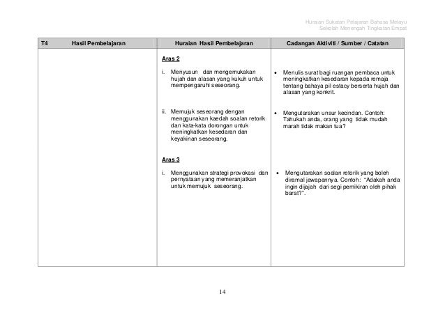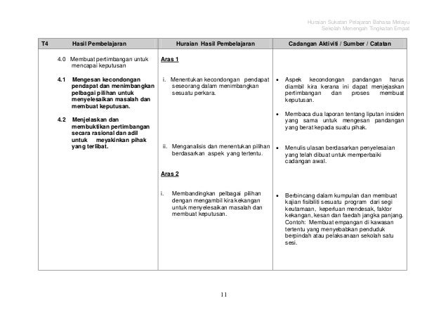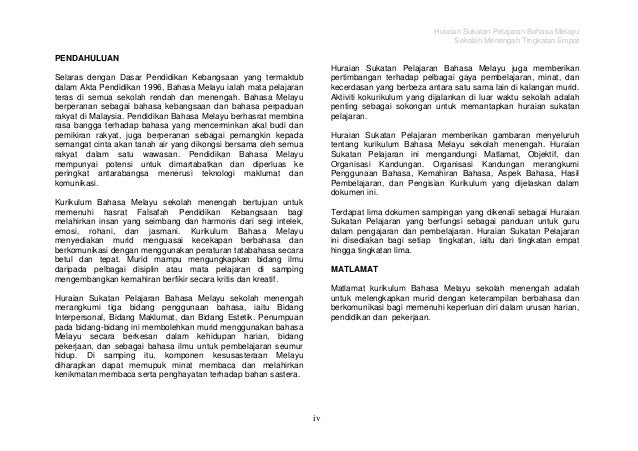 Sukatan Pelajaran Bahasa Melayu Tingkatan 4 Sumber Pendidikan
