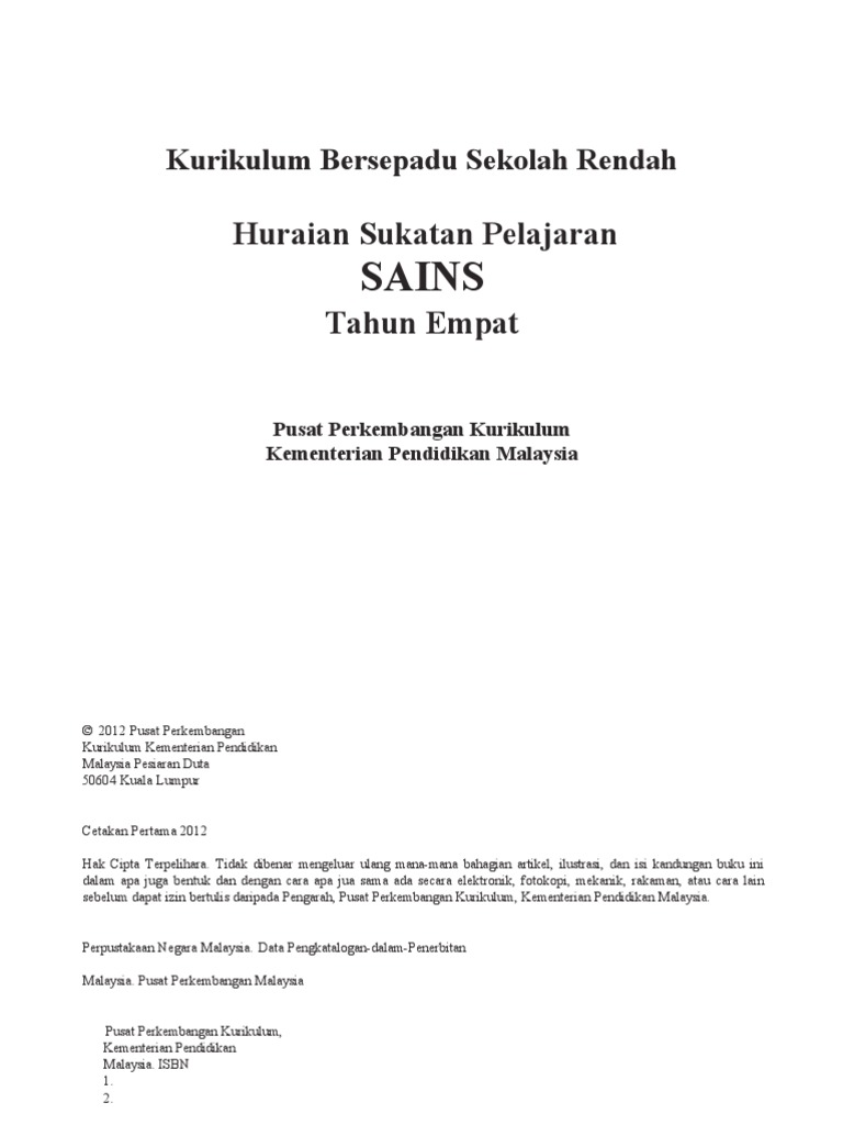 Huraian Sukatan Pelajaran Kbsr Sains Tahun 4 Bm Pdf Document