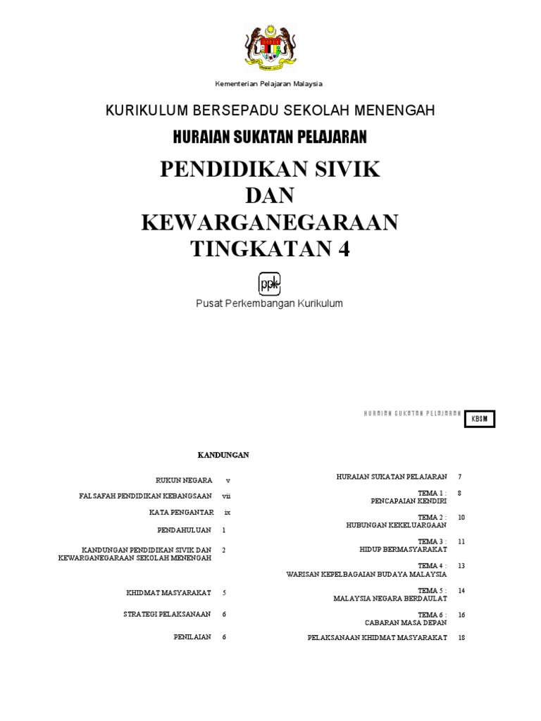 Pendidikan Sivik Dan Kewarganegaraan Tingkatan 4 Huraian Sukatan Pelajaran