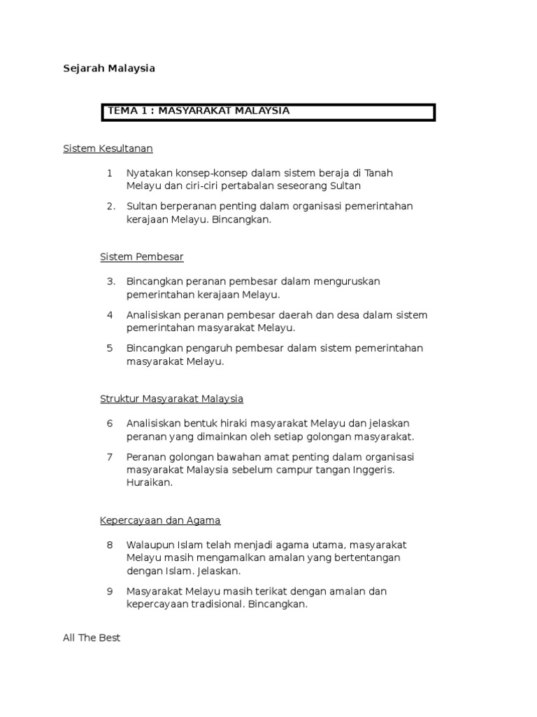 Soalan Dan Jawapan Sejarah Malaysia