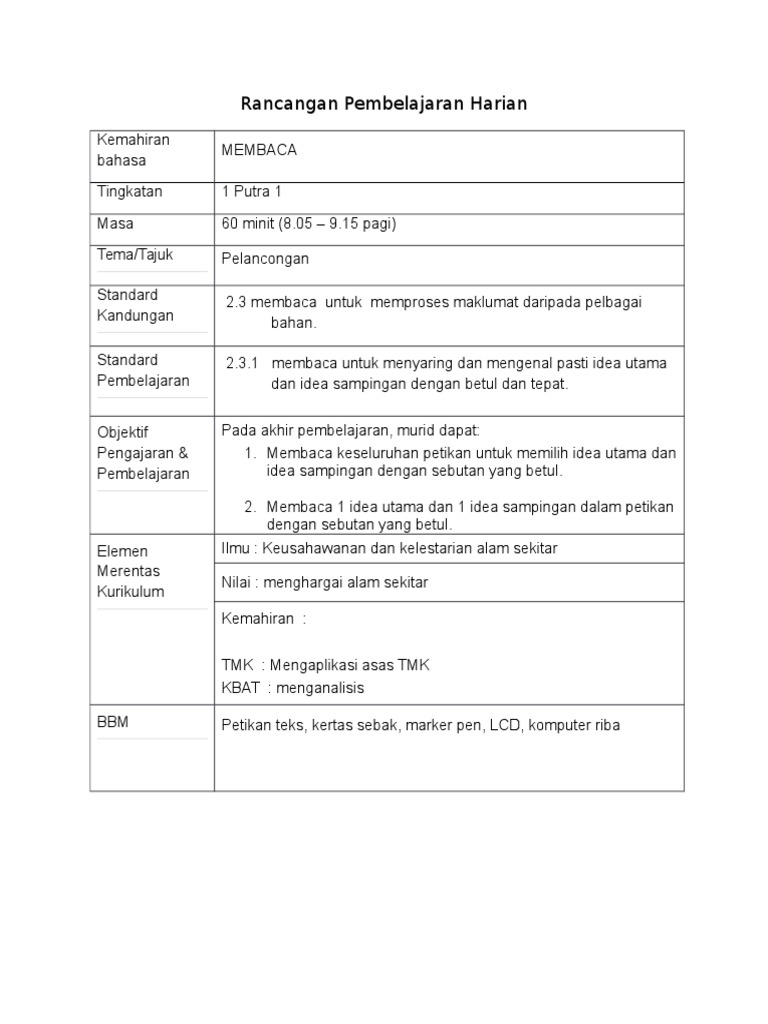Idea Utama Dan Idea Sampingan Contoh