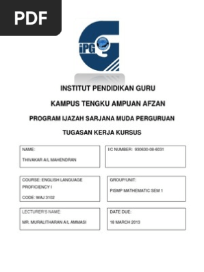 Kampus Dato Razali Ismail 21030 Kuala Terengganu Program Persediaan Ijazah Sarjana Muda Perguruan Ppismp Bachelor Of Teaching In Teaching English Course Hero