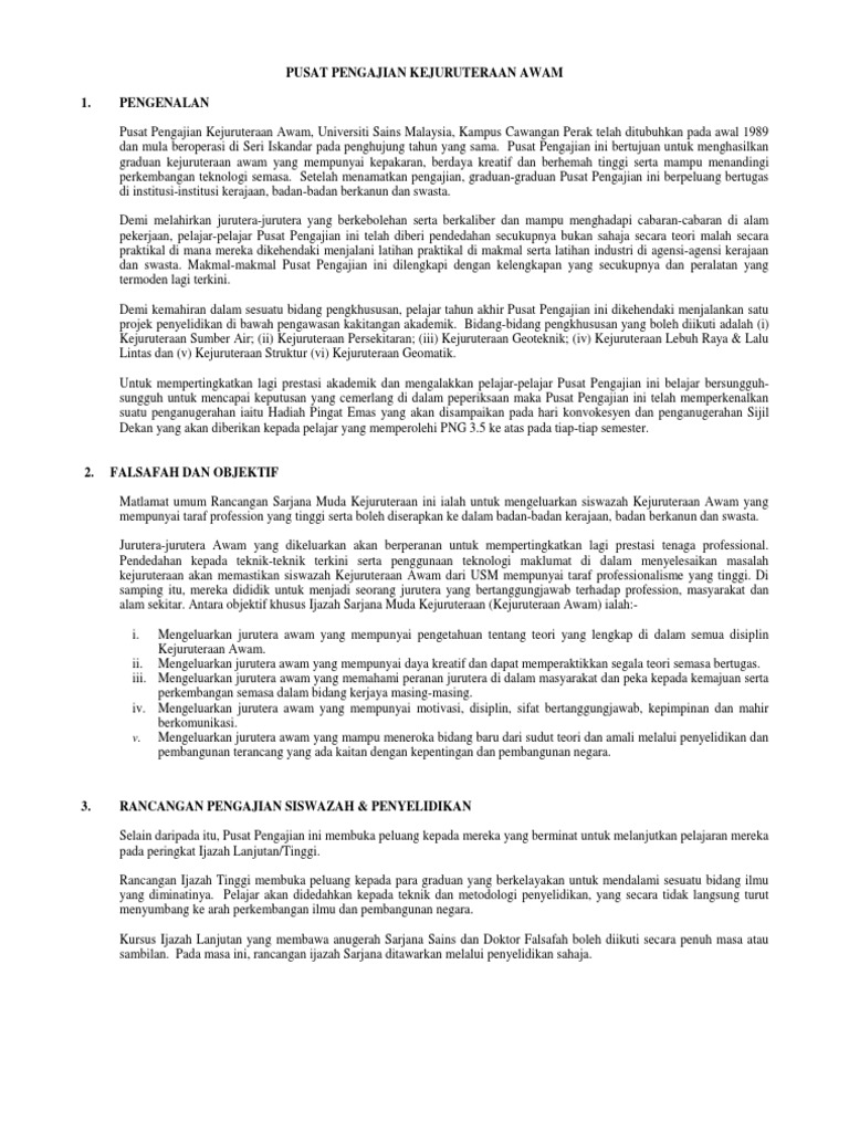 Pusat Pengajian Kejuruteraan Awam 1 Pengenalan