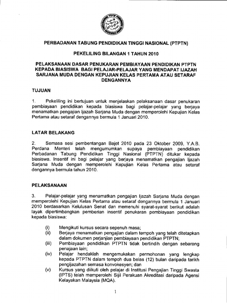 Permohonan Pengecualian Bayaran Balik Ptptn Untuk Peminjam Ijazah Sarjana Muda Kelas Pertama Di Buka Edu Bestari