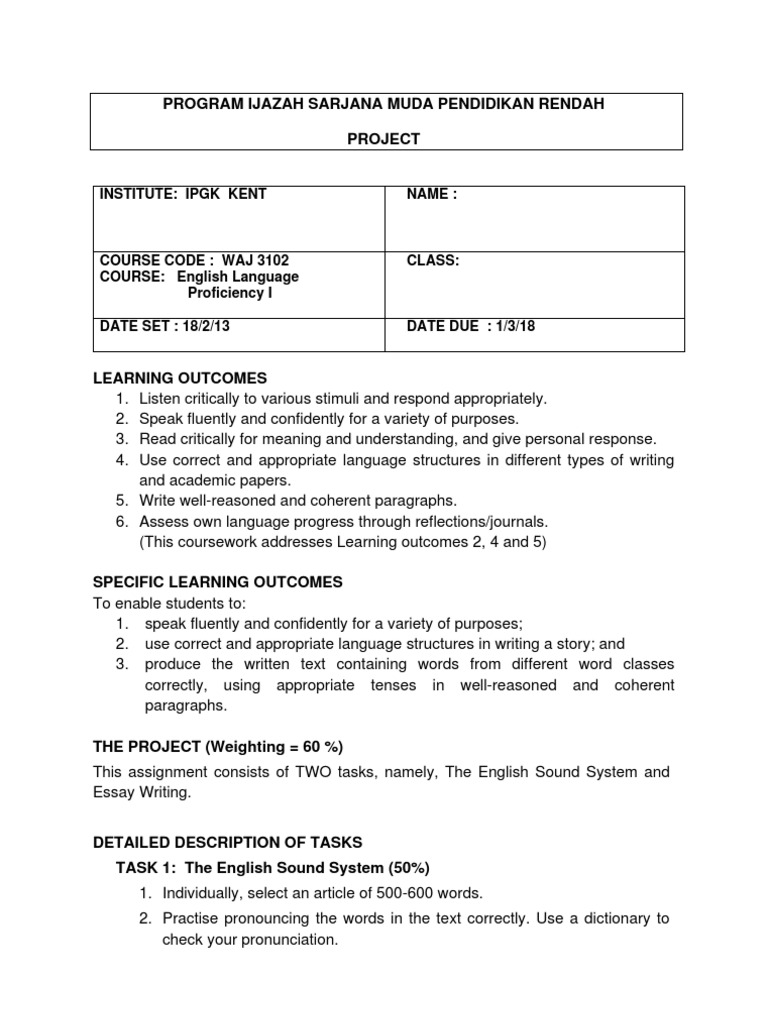 Doc Program Ijazah Sarjana Muda Perguruan Dengan Kepujian Tesl Pendidikan Rendah Institut Pendidikan Guru Kpm Rancangan Pengajaran Dan Pembelajaran Mingguan Kursus Major Tesl Tsl3104 English Phonetics And Phonology Noor Aqilah Kamarudin