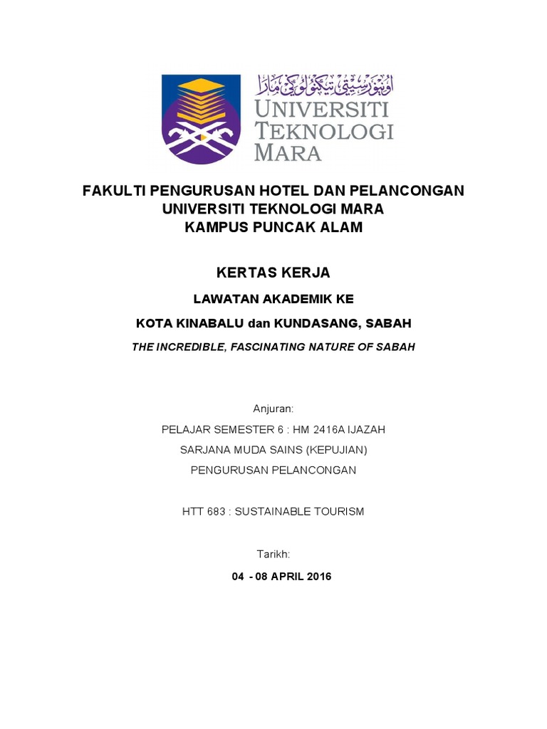 Fakulti Pengurusan Hotel Dan Pelancongan Fphp Uitm Universiti Teknologi Mara Kampus Puncak Alam Bandar Puncak Alam Kuala Selangor 2020