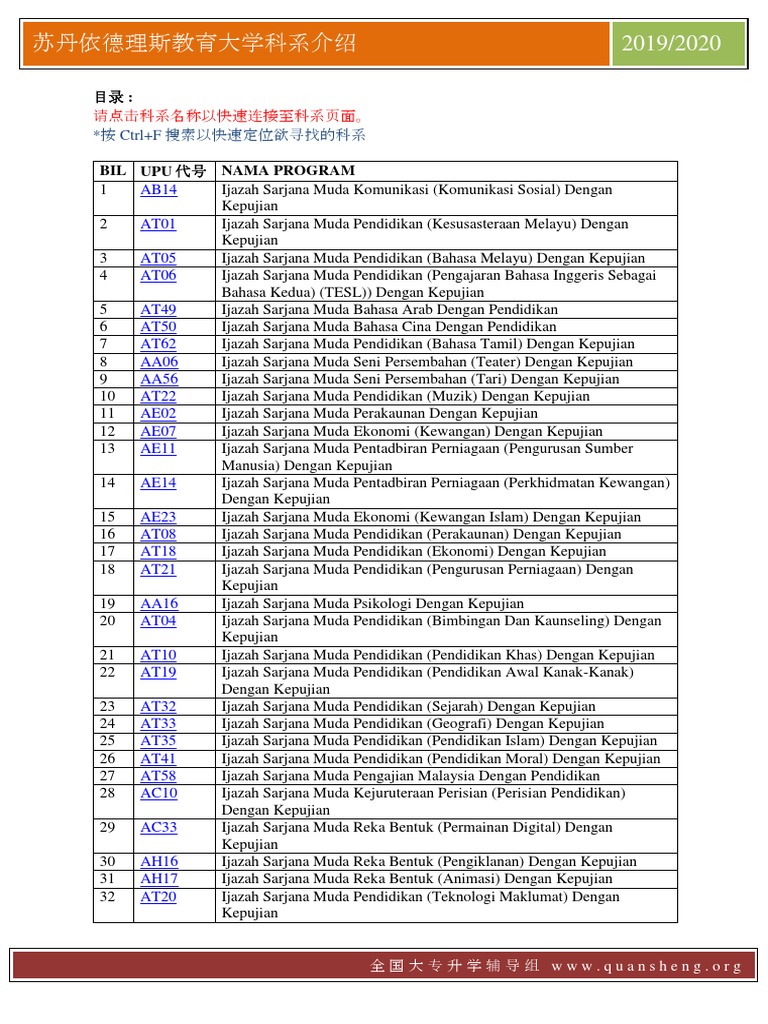 Senarai Program Ijazah Sarjana Muda Mengikut Kategori Aliran Kemasukan Pdf Document
