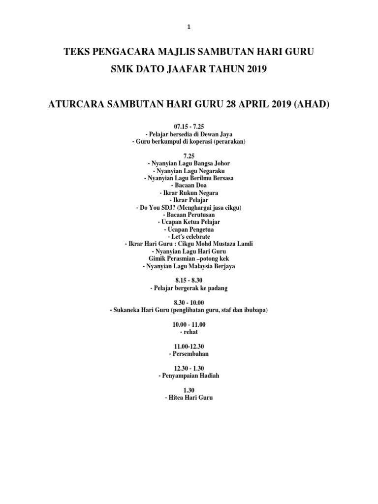 Teks Pengacara Majlis Sambutan Hari Guru 2019 Docx