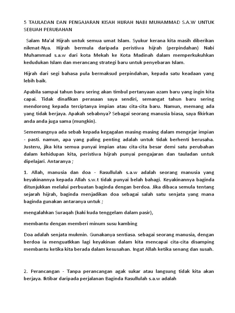 5 Tauladan Dan Pengajaran Kisah Hijrah Nabi Muhammad S