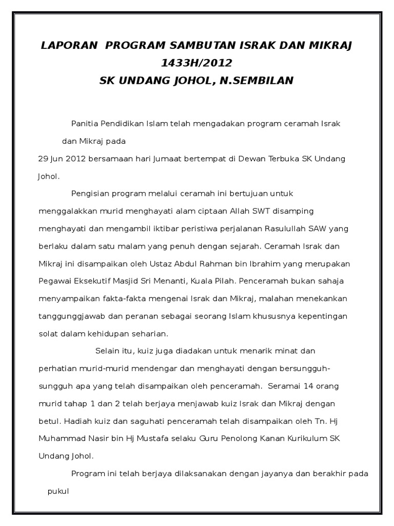 Laporan Program Sambutan Israk Dan Mikraj 2012