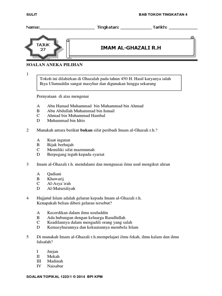 Soalan Tokoh T4 K1 27 Imam Al Ghazali R H