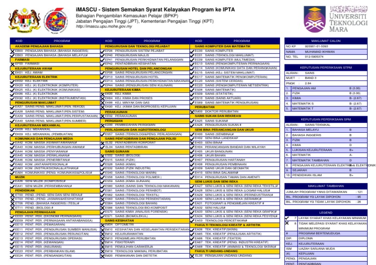 Imascu upu mohe gov my semak syarat kelayakan. Semoga pelajar dapat membuat pilihan terbaik ua ipta dan program kursus pengajian yang bersesuaian dengan minat dan kelayakan akademik yang diperolehi oleh pelajar. Untuk makluman dan bermula dari bulan mac 2015 istilah institut pengajian tinggi awam ipta telah diganti dengan universiti awam ua. Klik cetak maklumat itu sebagai rujukan pelajar akan datang. Page facebook upu ckap untuk semak syarat kelayakan ke ipta bgi sesi 2013 2014 xboleh disemak melalui imascu sebab syarat yg dikenakan bukanlah yg terkini.