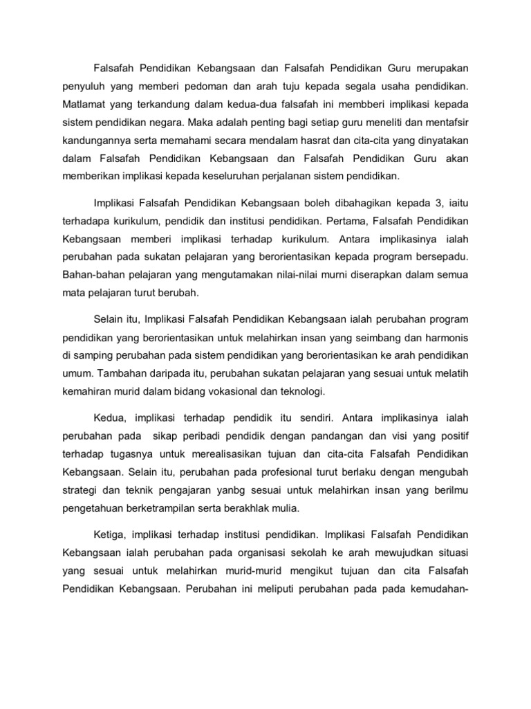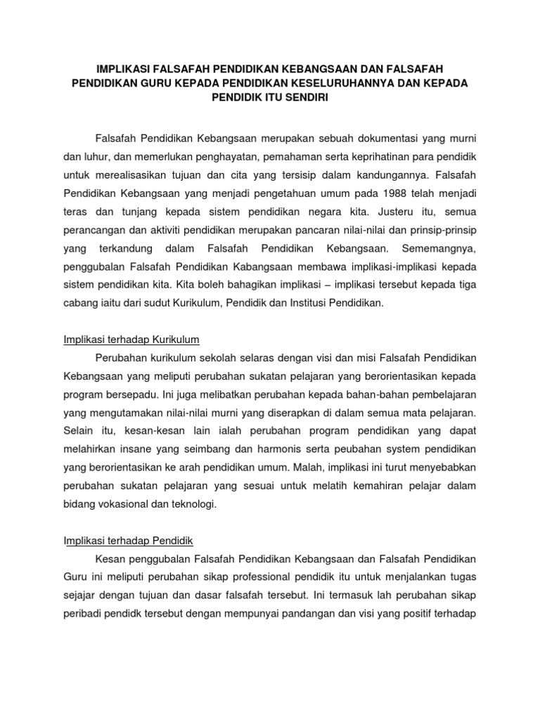 Implikasi Falsafah Pendidikan Kebangsaan Falsafah Pendidikan Guru Pdf Document