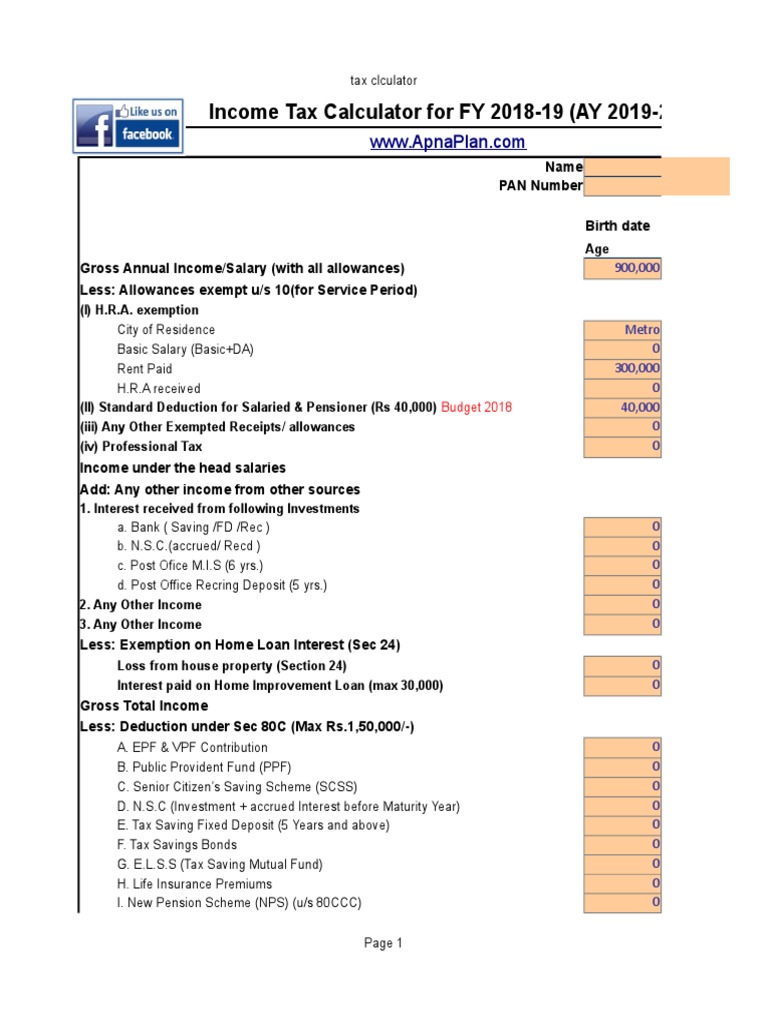 Income Tax Calculator Fy 2018 19 V4 Saving Taxes