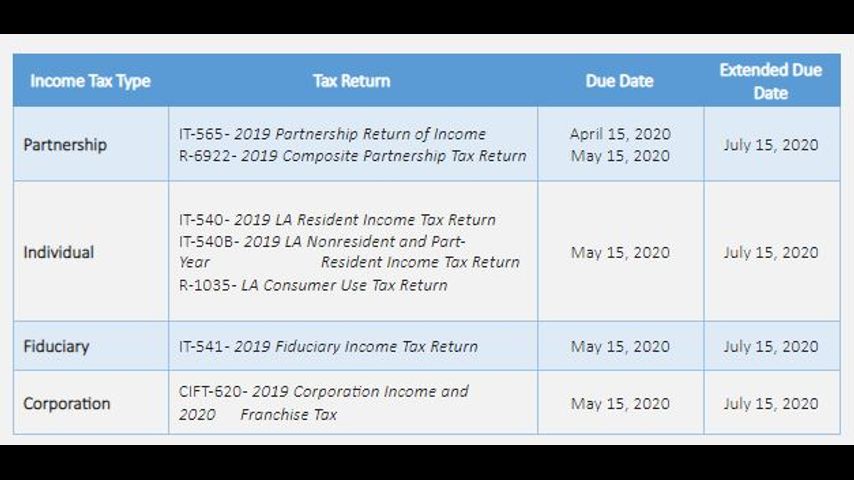 Louisiana Income Tax Deadline Extended Due To Public Health Emergency