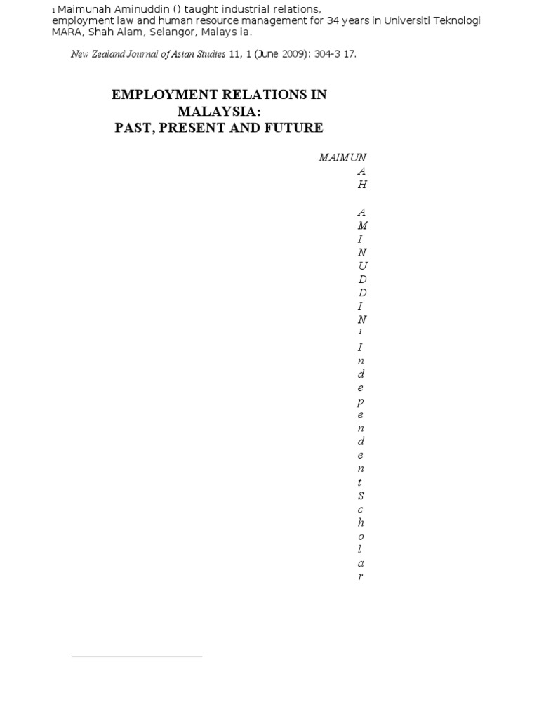 Employment Relations In Malaysia Past Present And Future Nzasia