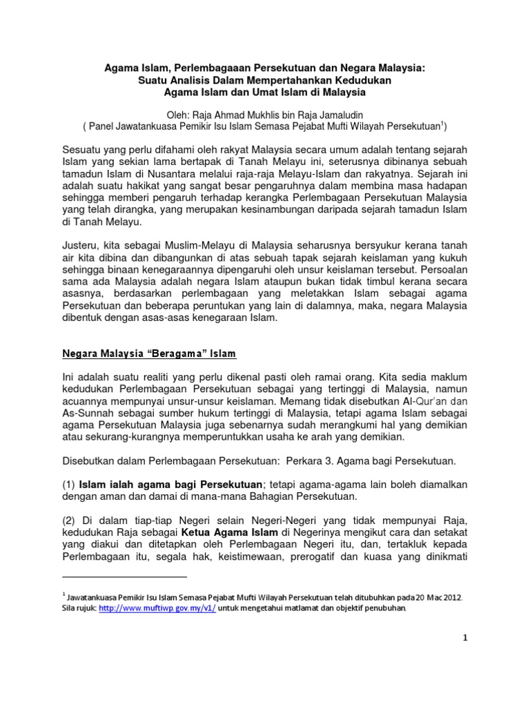 Agama Islam Perlembagaaan Persekutuan Dan Negara Malaysia
