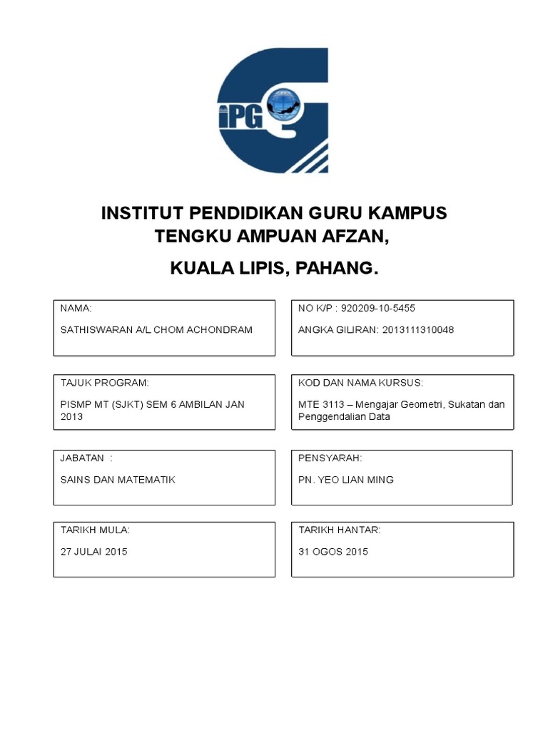 Jpp Ipg Kampus Tengku Ampuan Afzan Kuala Lipis Institut Pendidikan Guru Kampus Tengku Ampuan Afzan 27200 Kuala Lipis Pahang Kuala Lipis 2020