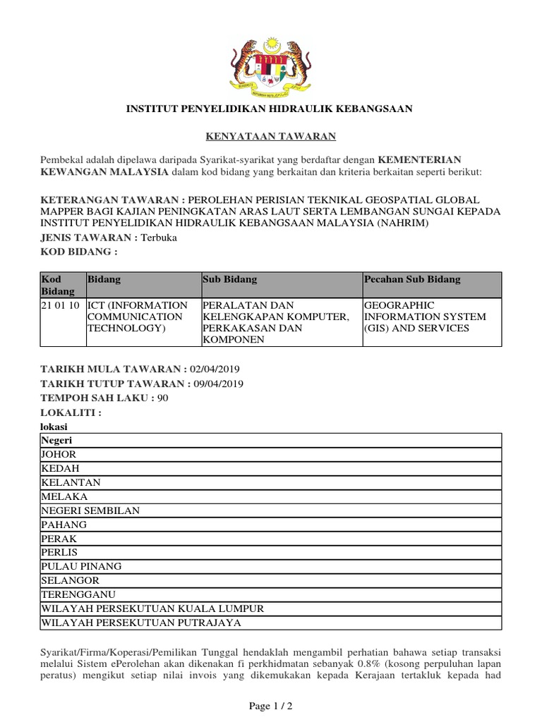Jawatan Kosong Institut Penyelidikan Hidraulik Kebangsaan Malaysia Nahrim Tarikh Tutup 09 Jun 2019 Jawatan Kosong Kerajaan 2020 Terkini