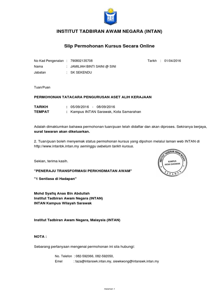 Institut Tadbiran Awam Negara Intan Kampus Wilayah Sarawak Sarawak 60 82 592 000