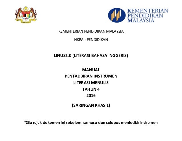 Instrumen Linus 2 0 Saringan 2 Bagi Bm Mt Dan Bi Tahun 1 Hingga Tahun 3 Pendidikan Abad Ke 21