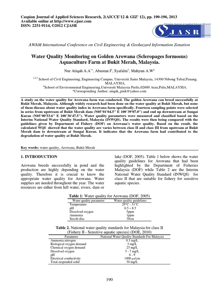 Water Quality Monitoring On Golden Arowana Scleropages Formosus 1 Water Quality Ammonia