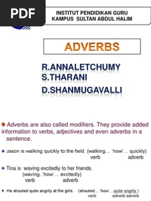 R Annaletchumy S Tharani D Shanmugavalli Institut Pendidikan Guru Kampus Sultan Abdul Halim Adverb Adjective