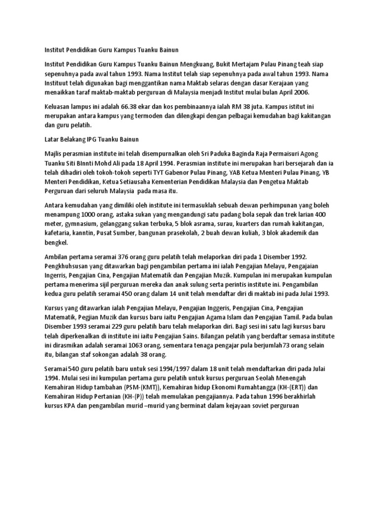 Ipg Kampus Tuanku Bainun Prasarana Institut