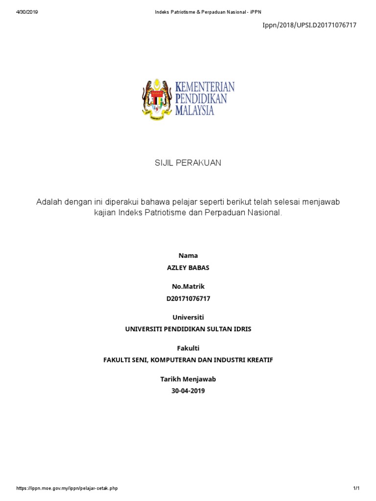 Indeks Patriotisme Perpaduan Nasional Ippn