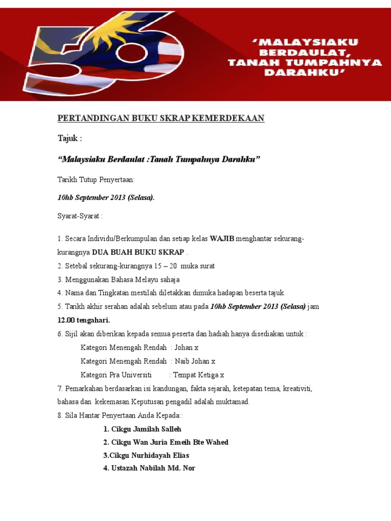 Pertandingan Membuat Buku Skrap Sempena Bulan Merdeka Sk Rakyat Tupong 2017 Sejarah Kemerdekaa N Negara Wan Imamul Academia Edu
