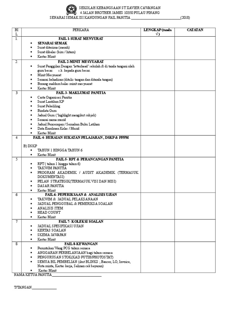 Doc Senarai Semak Isi Kandungan Fail Panitia Mata Pelajaran Panitia Fazila Wati Academia Edu