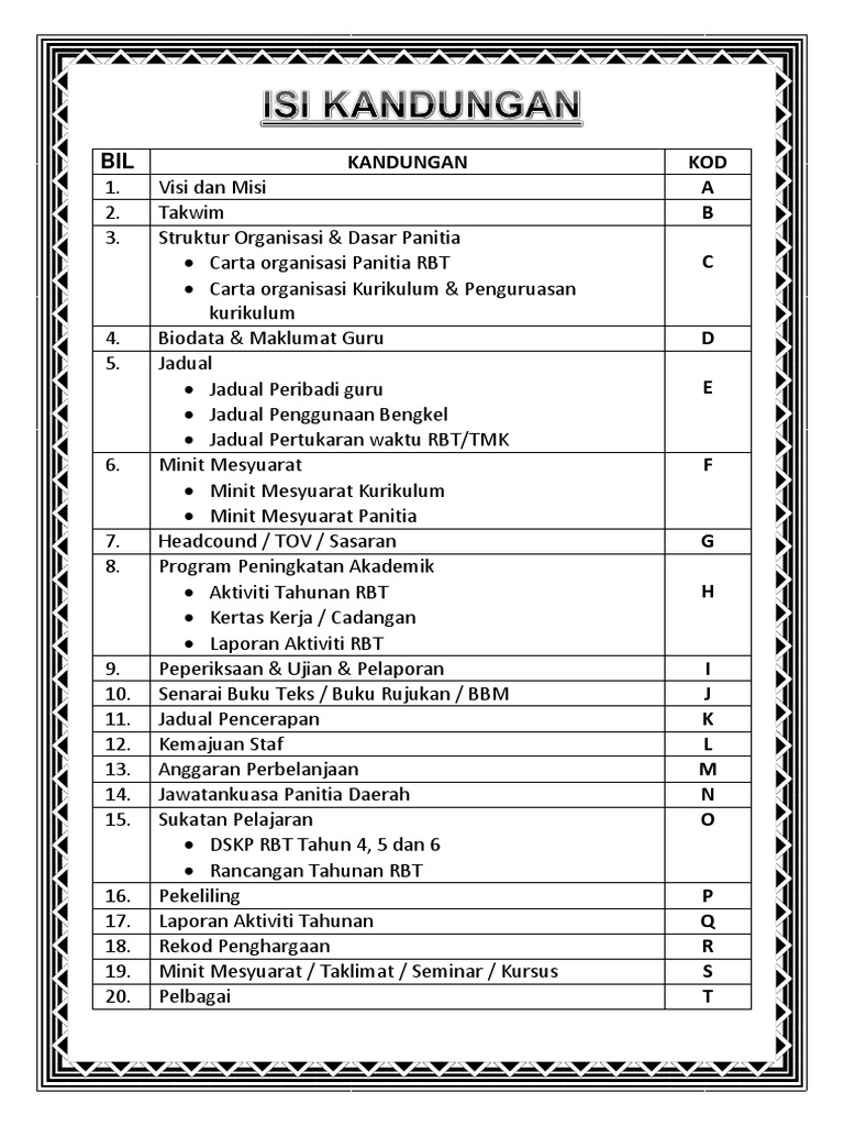 Isi Kandungan Fail Panitia Rbt