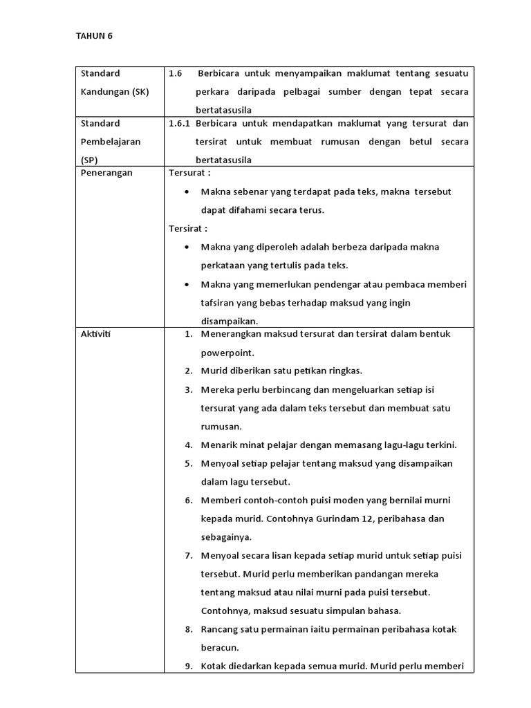 Isi Tersurat Dan Tersirat Tahun 6
