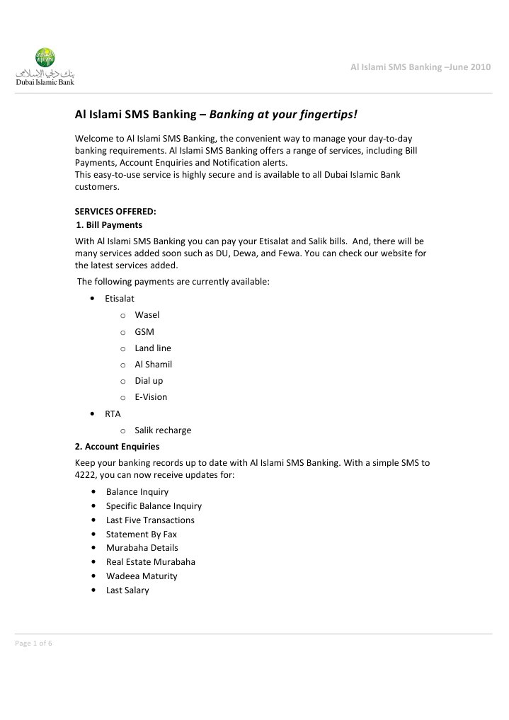 6969 for local clients 8801714006969 for international clients sms writing instructions in details. Balance mini statement check through ivr. Through online banking mobile banking express banking terminal go to services sms banking registration. Through any dubai islamic bank atm go to others sms banking at any dib branch by filling in the electronic banking service registration form.