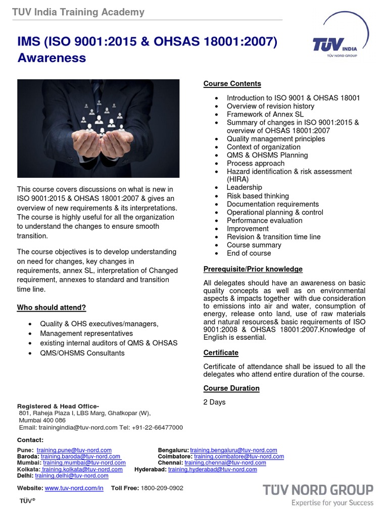 Ims Iso 9001 2015 Ohsas 18001 2007 Awareness Course Contents Iso 9000 Business