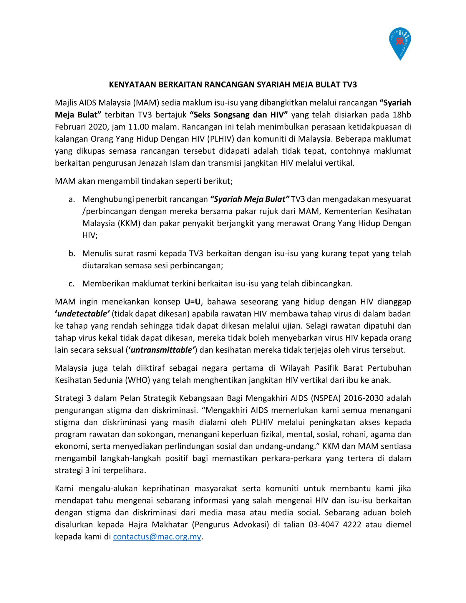 Malaysian Aids Council On Twitter Kenyataan Berkaitan Rancangan Syariah Meja Bulat Tv3malaysia Endingaids Uequalsu Nostigma