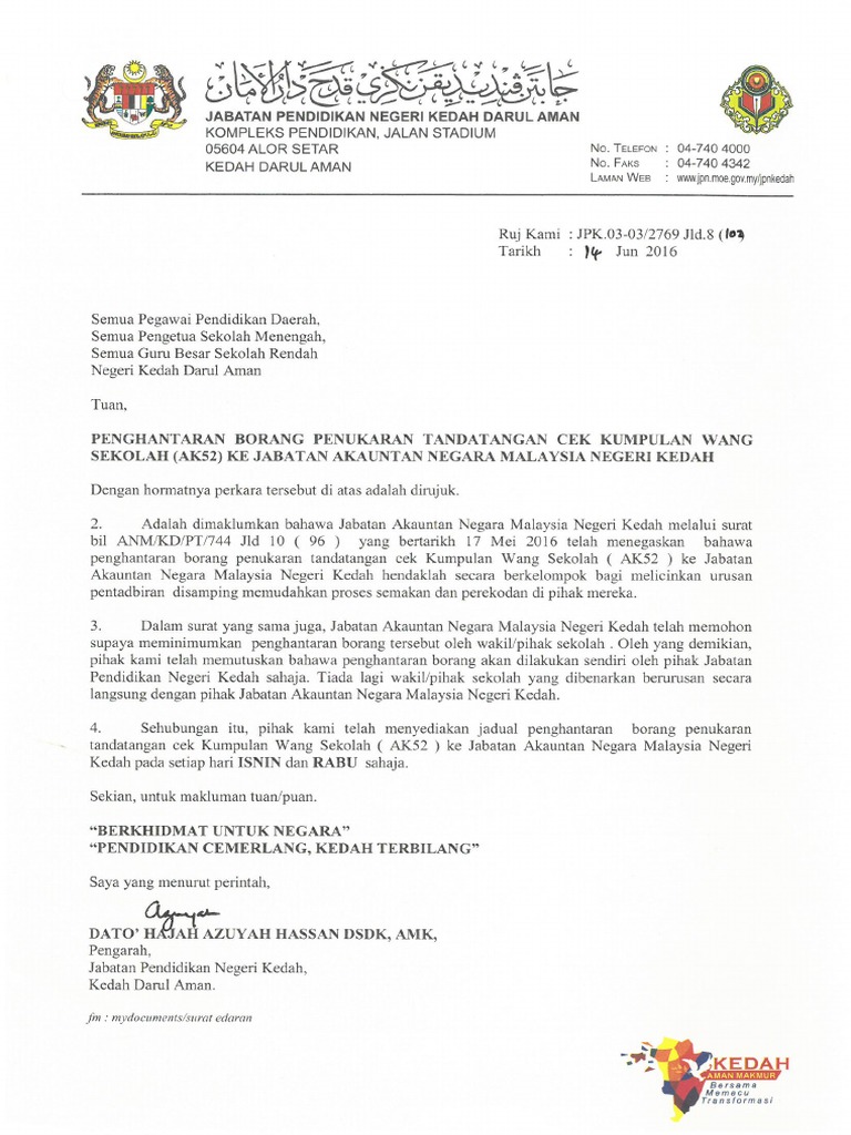 Penghantaran Borang Penukaran Tandatangan Cek Ak 52 Ke Jabatan Akauntan Negara Pdf