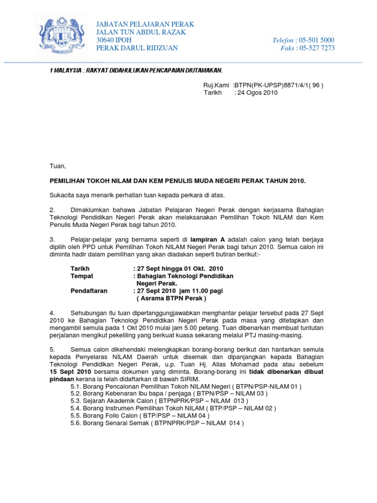 Surat Panggilan Pemilihan Tokoh Nilam Head Jpn