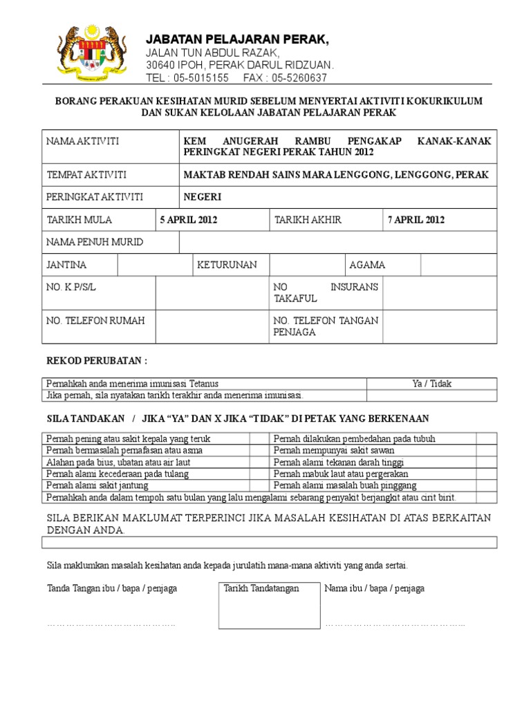 Jabatan Pelajaran Perak Jalan Tun Abdul Razak 30640 Ipoh Perak Darul Ridzuan Tel 05 5015155 Fax 05 5260637
