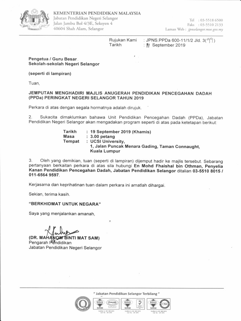 Jabatan Pendidikan Negeri Selangor Darul Ehsan Surat Mig