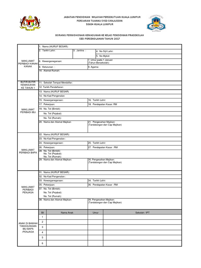 Pengarah Pendidikan Wilayah Persekutuan Kuala Lumpur Persiaran Tuanku Syed Sirajuddin Kuala Lumpur 2020
