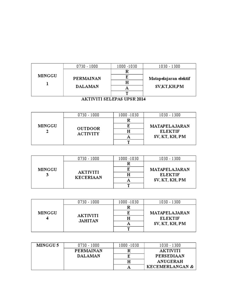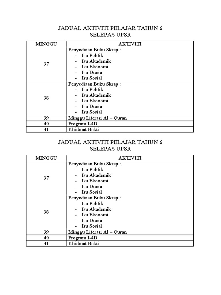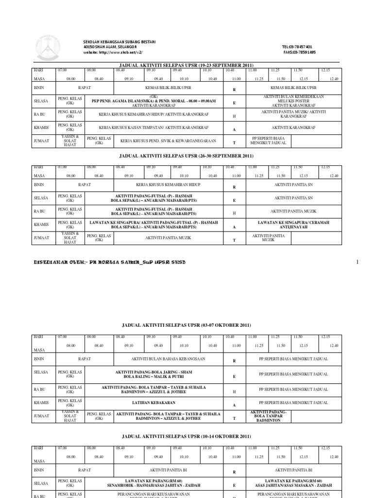 Jadual Aktiviti Pelajar Tahun 6 Lps Upsr