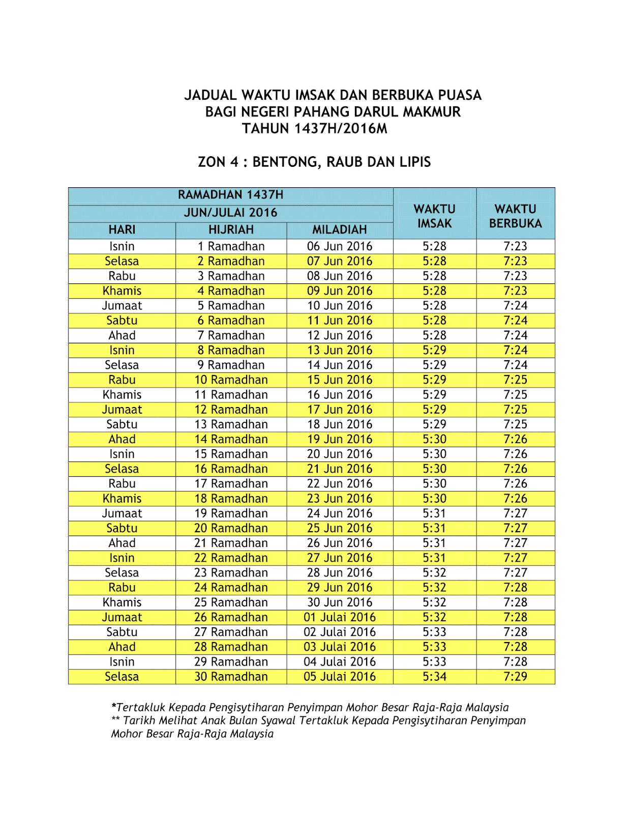 Bki On Twitter Jadual Waktu Imsak Dan Berbuka Puasa Tahun 1437 H 2016 Bagi Zon Vii