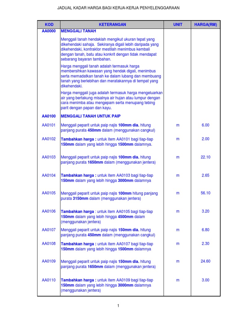 Jadual Kadar Harga Kerja Kerja Kecil Dan Memperbaiki Tahun Pdf Free Download